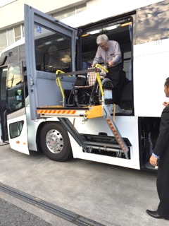 - 車いすが必要な方でも、安心してご乗車いただけるリフト昇降機を搭載しております。