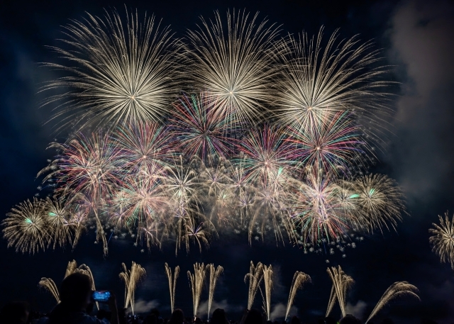 連続して打ち上がるスターマイン、体に響く大音響、視界いっぱいに広がる光の競演。