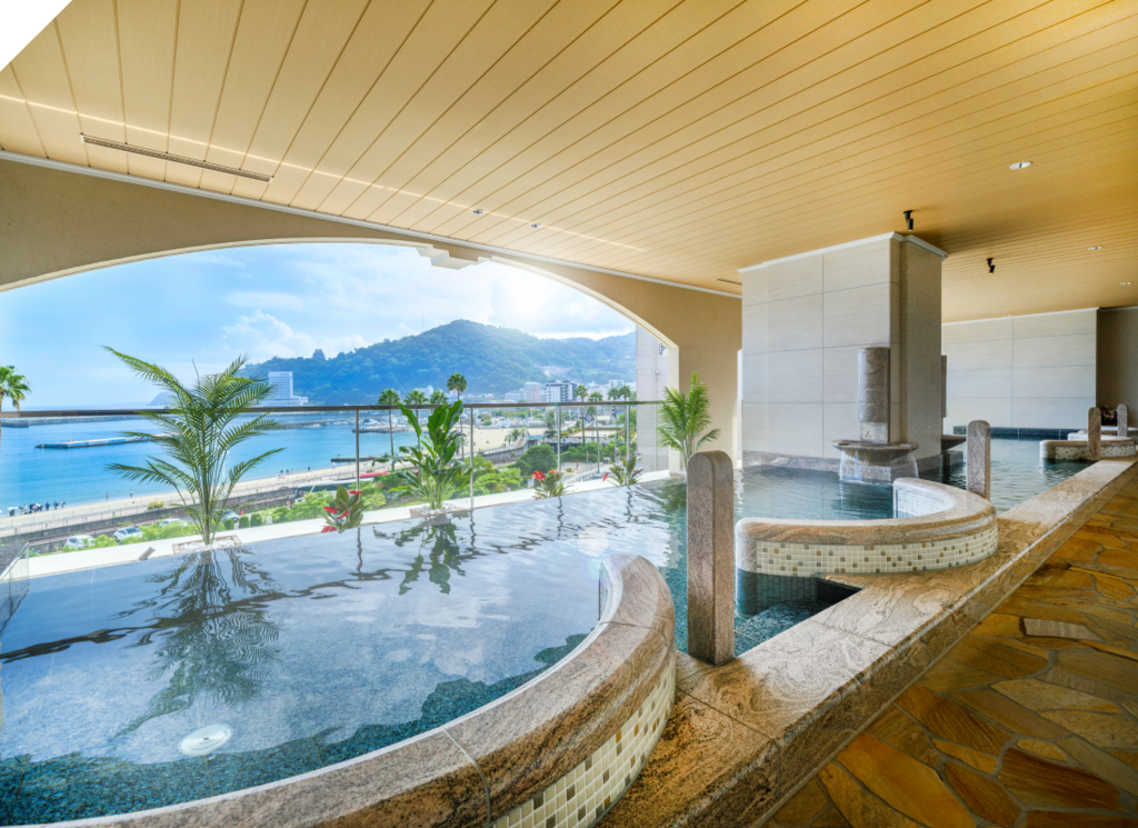 館内の展望露天風呂からは、広大な海を見渡す圧巻のパノラマ。