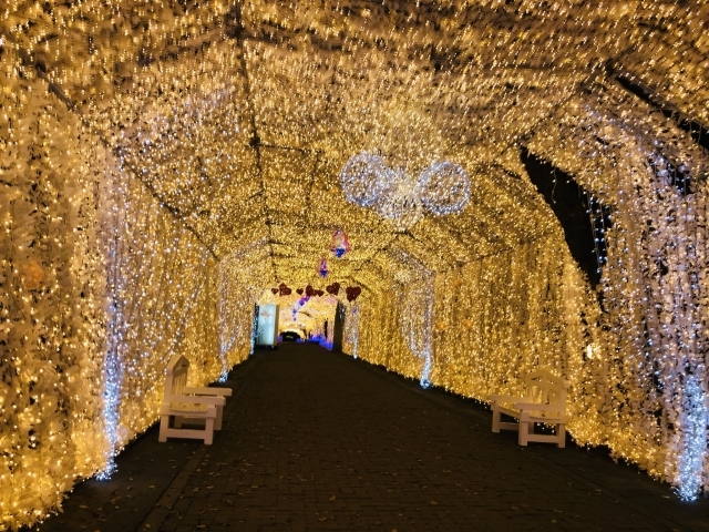 通路を歩くだけでも光のトンネルやイルミネーションアートが広がり、写真映えも抜群。寒さを忘れるほどの感動に包まれます。